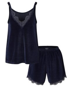 LEXINGTON Damen-Pyjama CHARLOTTE VELOUR PAJAMA SET, Dark Blue, Größe M