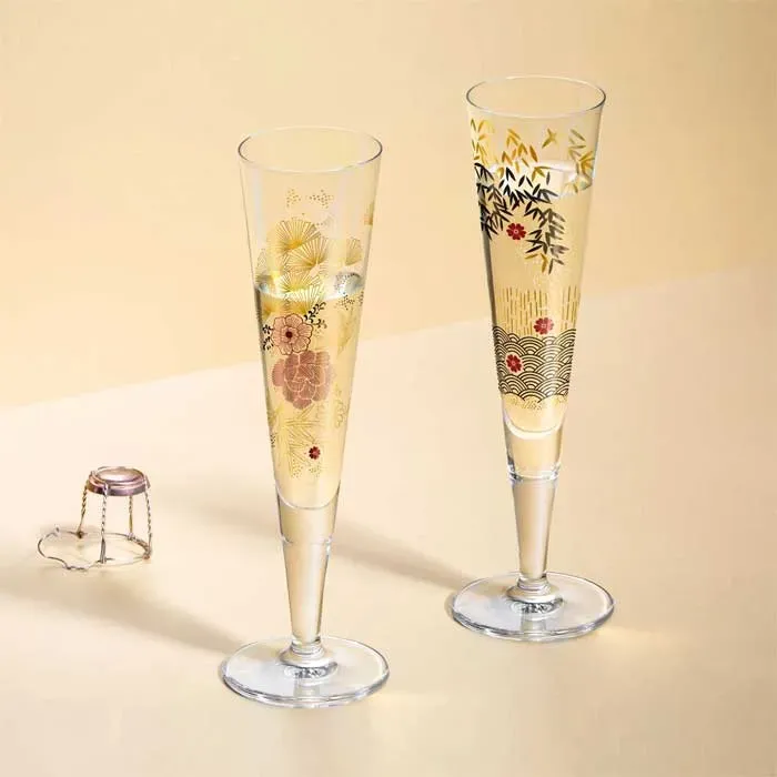 - Edles Champagnerglas mit echten Goldanteilen im Dekor