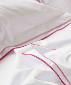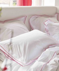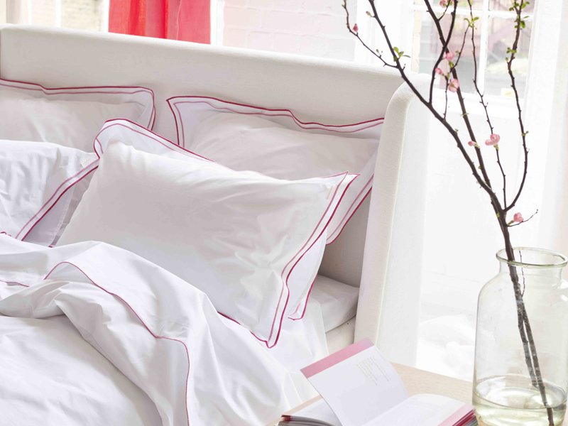 - weiße Bettwäsche mit doppelreihigem Stehsaum am Kissenbezug