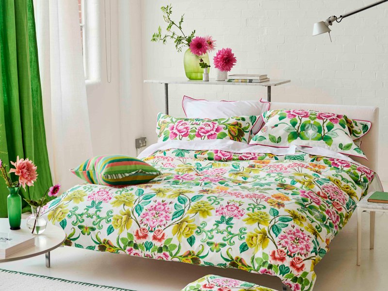 Wundervoll kombinieren, und somit die Frische der Bettwäsche nochmals unterstreichen, lässt sich die Designers Guild Bettwäsche ELEONORA FUCHSIA mit der weißen Perkalbettwäsche ASTOR PEONY. Die pinkfarbene Satinpasplierung bzw. die zweireihigen Ziernähte in Fuchsia der beiden Bettwäschesets sorgen für ein sehr harmonisches Bild.