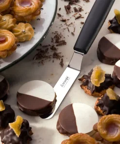Wichtig dabei ist, dass Sie noch eine Hand frei haben. So können Sie mit einer Hand den Mehlsiebgriff umfassen und den Inhalt durch den Hebel am Griff auf einen Untergrund Ihrer Wahl sieben oder nebenbei schon die Masse verrühren.