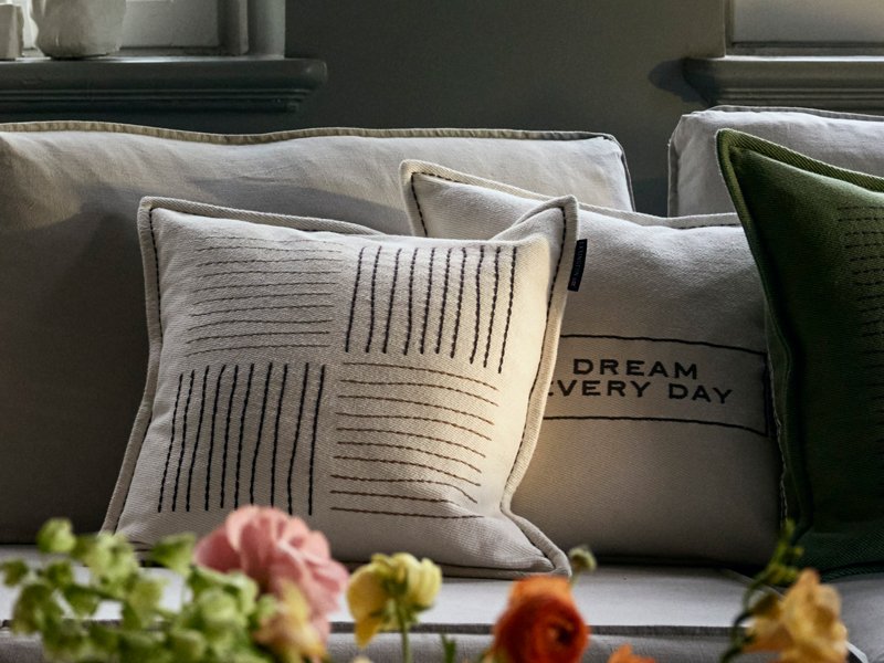 Die Kissenhülle ist in einem cleanen Weißton gehalten, für die Stickerei und die umlaufende Ziernaht wurde ein toller Beige-Grauton gewählt. Somit lässt sich das Kissen perfekt im skandinavischen Wohnstil oder White Living in Szene setzen…