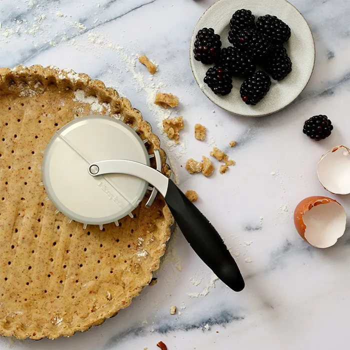 Das Teilen einer ganzen Pizza in kleinere Stücke kann schon manchmal zur Herausforderung werden. Mit dem neuen Profi Pizza Schneider von Microplane kann dies nicht passieren. Denn die freilaufende Edelstahlklinge ist rasiermesserscharf! Ganz egal, ob Pizza, Flammkuchen, Quiche, Tarte, Pizzabrot oder Blechkuchen – alles lässt sich ohne viel Kraftaufwand sauber und perfekt zerteilen. Dank des ergonomisch geformten, rutschfesten Soft-Touch Griffs, wird die Kraft optimal übertragen.