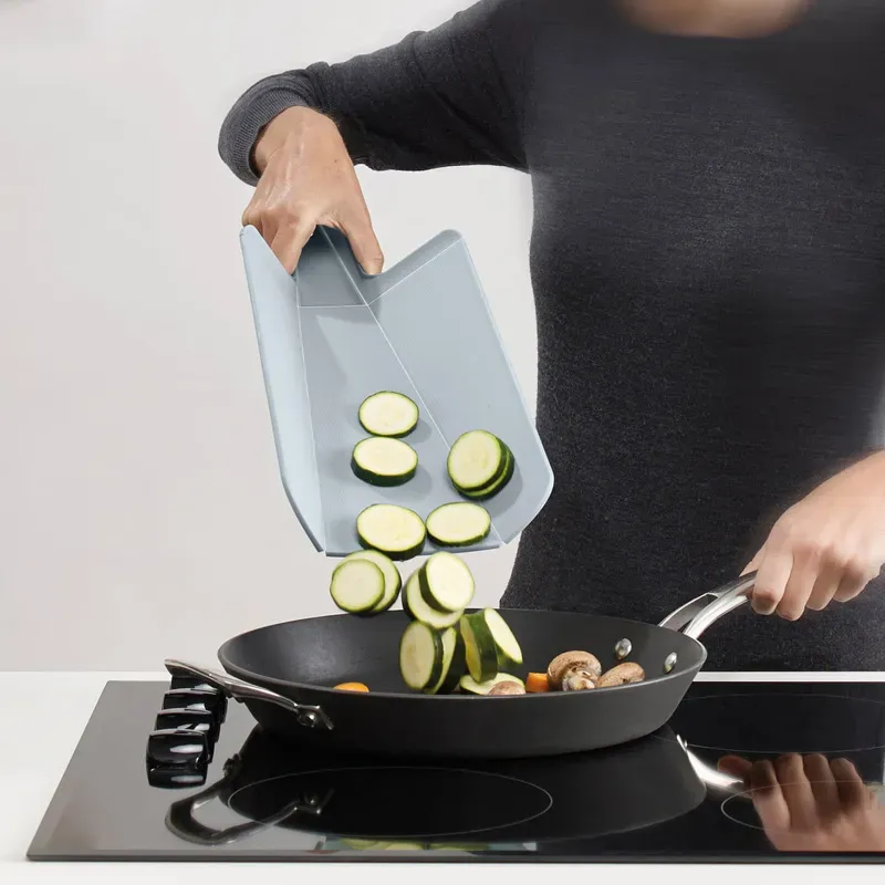Die neue, überarbeitete Generation des faltbaren Schneidebretts Chop2Pot PLUS von Joseph Joseph.