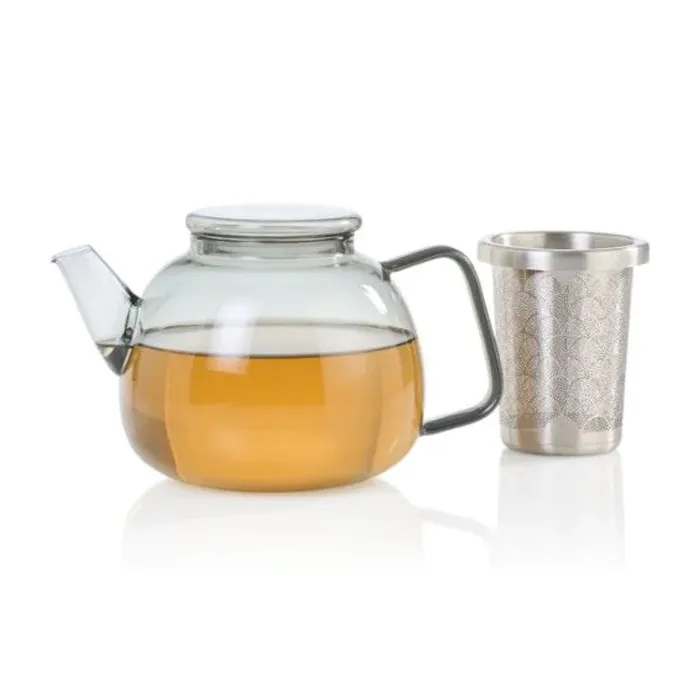 Mit der Teekanne „Yuna“ von AdHoc wird Teegenuss perfekt. Im skandinavischen Design strahlt sie mit ihrer bauchigen Form Gemütlichkeit aus, die sie zum Mittelpunkt jeder entspannten Teestunde macht. Außerdem liegt sie mit der Farbe ihres schimmernden Glases, einem dezenten Rauchgrau, voll im Trend.